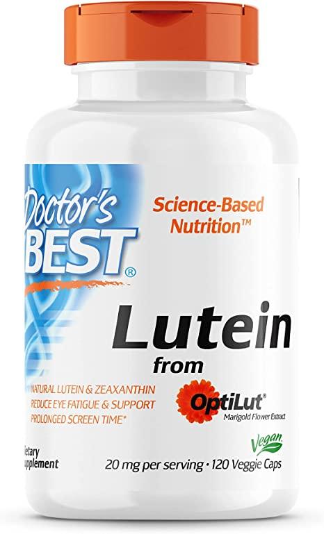 Лютеїн з від Doctor's Best містить комплекс OptiLut, з квіток чорнобривців, і містить натуральний лютеїн і транс-зеаксантин з високою біодоступністю.